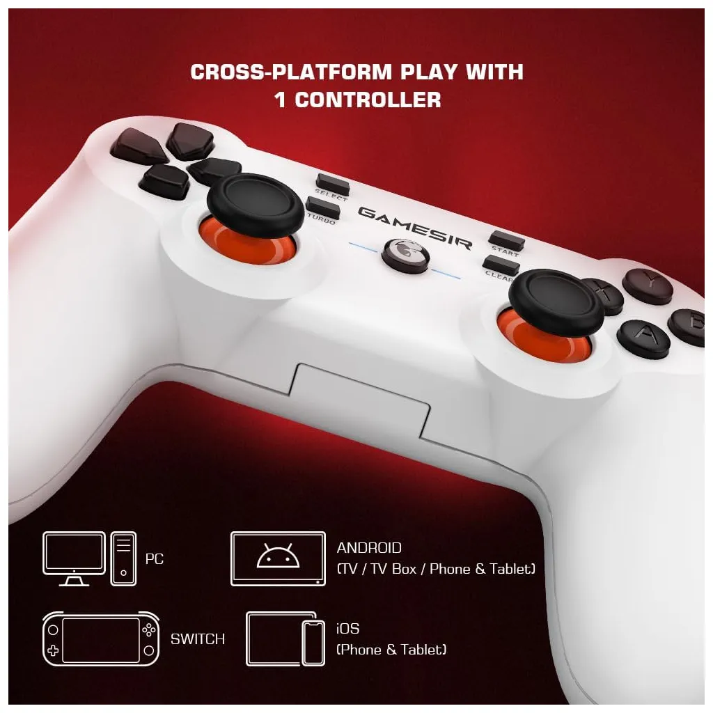 GameSir T3s Wireless Gaming Controller for Windows PC, Android TV Box, iOS & Android – Dual-Vibration Bluetooth Gamepad for Nintendo Switch (White)