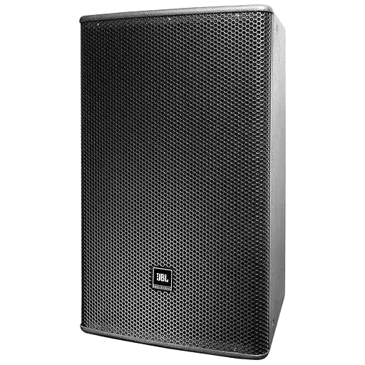 The black AC566 15″ 2-Way Full-Range Passive Loudspeaker System from JBL features one 15″ low frequency driver and one 1” exit/1.5” voice-coil compression driver. The horn provides 60 x 60° coverage in vertical and horizontal orientation. High-slope passive crossovers minimize band overlap and offer well-controlled off-axis response. The cabinet is fitted with M10 threaded suspension points. Four threaded inserts located on back of the enclosure allow attachment of a MultiMount or similar type of mounting hardware.