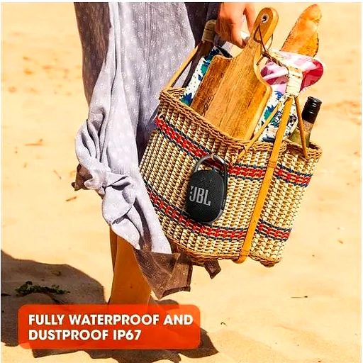 Cool, portable, and waterproof. The vibrant fresh looking JBL Clip 4 delivers surprisingly rich JBL Original Pro Sound in a compact package. The unique oval shape fits easy in your hand. Fully wrapped in colorful fabrics with expressive details inspired by current fashion, easy to match your style.