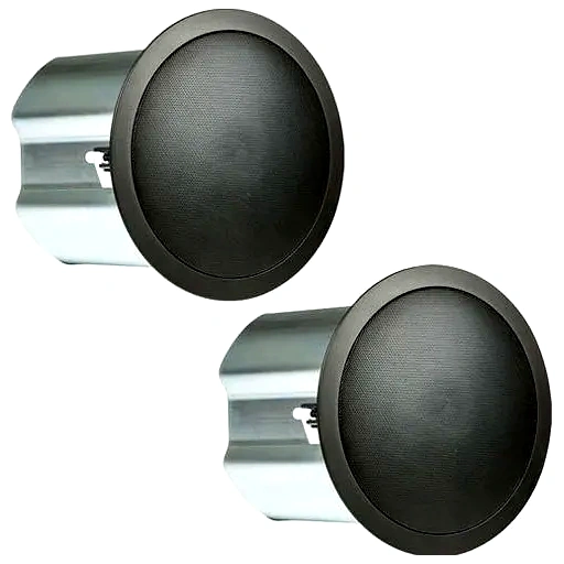 100W continuous program power rating Components: 6.5″ / 165.1mm high-output driver with polypropylene cone and butyl rubber surround, and 0.75″ / 19mm soft-dome liquid-cooled tweeter Blind-mount backcan for quick and easy install Dual conduit cable clamps Combined 70V/100V and low impedance direct operation 62 Hz to 20 kHz bandwidth with 110° conical coverage High 91 dB sensitivity Suitable for use in air handling spaces and as signaling speakers