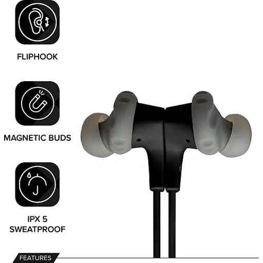 Up to 6 hours of wireless playback. Magnetic Buds. Sweatproof.