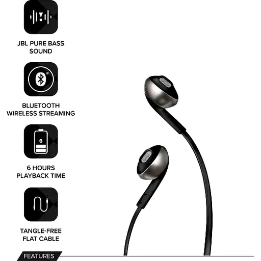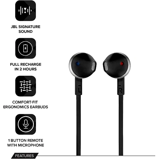 Thanks to the 6-hour battery life, the JBL TUNE 205BT wireless earbud headphones can wirelessly stream JBL Pure Bass sound and provide hands-free call management. Inside the premium housing is a pair of 12.5mm drivers while the soft, ergonomically shaped earbuds ensure the listening experience remains comfortable. In addition, a single-button remote lets you control music playback, as well as answer with the built-in microphone, making the JBL TUNE 205BT your everyday companion.