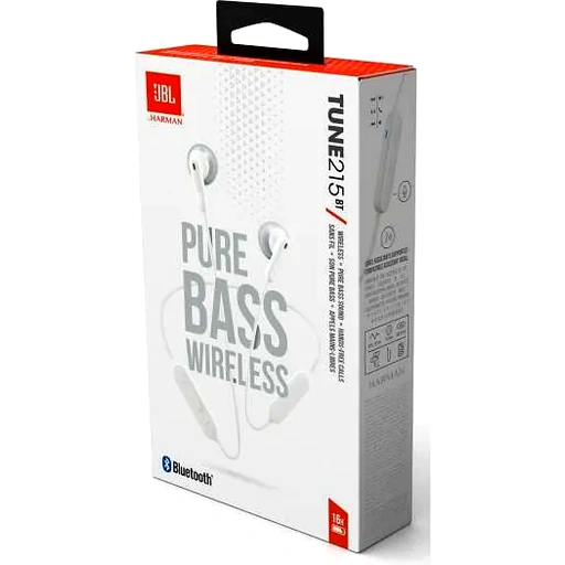 PURE BASS, WIRELESS Introducing JBL TUNE 215BT wireless earbud headphones with JBL Pure Bass Sound. Thanks to the 16-hour battery life they can wirelessly stream high quality JBL Pure Bass sound and provide hands-free call management. Inside the premium housing is a pair of 12.5 mm drivers which will punch out some serious bass, while the soft, ergonomically shaped earbuds ensure the listening experience remains comfortable for long-listening hours. In addition, a three-button remote with mic on a tangle-free cable lets you control music and calls and access your devices’ voice assistant. The multi-point connection allows you to never miss a call, making the JBL TUNE 215BT your everyday companion for work, at home and on the go.
